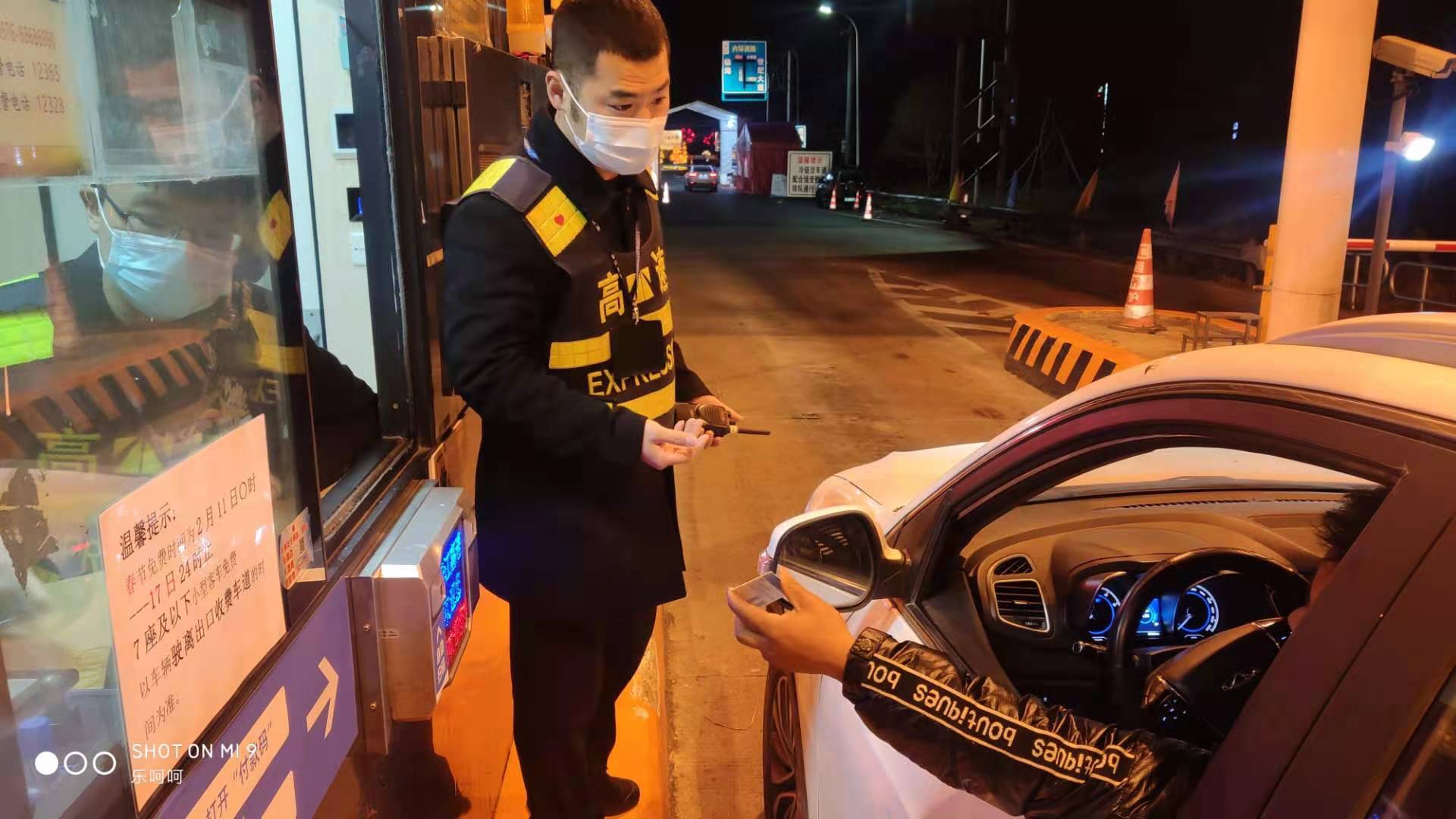 由于錯過免費時間,且中途也沒有下過高速,所以他們的通行費得從四川宜賓繞城高速開始算起。當司機看到報價器上跳出1204元的通行費時,便不愿支付這個費用。該司機認為高速收費是從0點開始的,那么計費也應從0點他所行駛的路段開始計算,不應該收取他的全程費用。當班收費員以及班長與其耐心溝通,解釋收費政策,但依舊無果。收費站車流量逐漸增大,為了維護正常收費,使得交通順暢,當班班長進行了報警處理。民警到現場了解情況后,對駕駛員進行勸說。駕駛員最后終于支付了通行費離開。 春節假期,高速公路免收通行費時間從2月12日0點開始至2月18日0點結束,在免費通行結束的最后一刻,常有司機不清楚免費政策而停留在車道上,為了保證車道暢通,18日0點開始,收費所領導帶領行政人員在車道上跟這些司機耐心解釋溝通。
