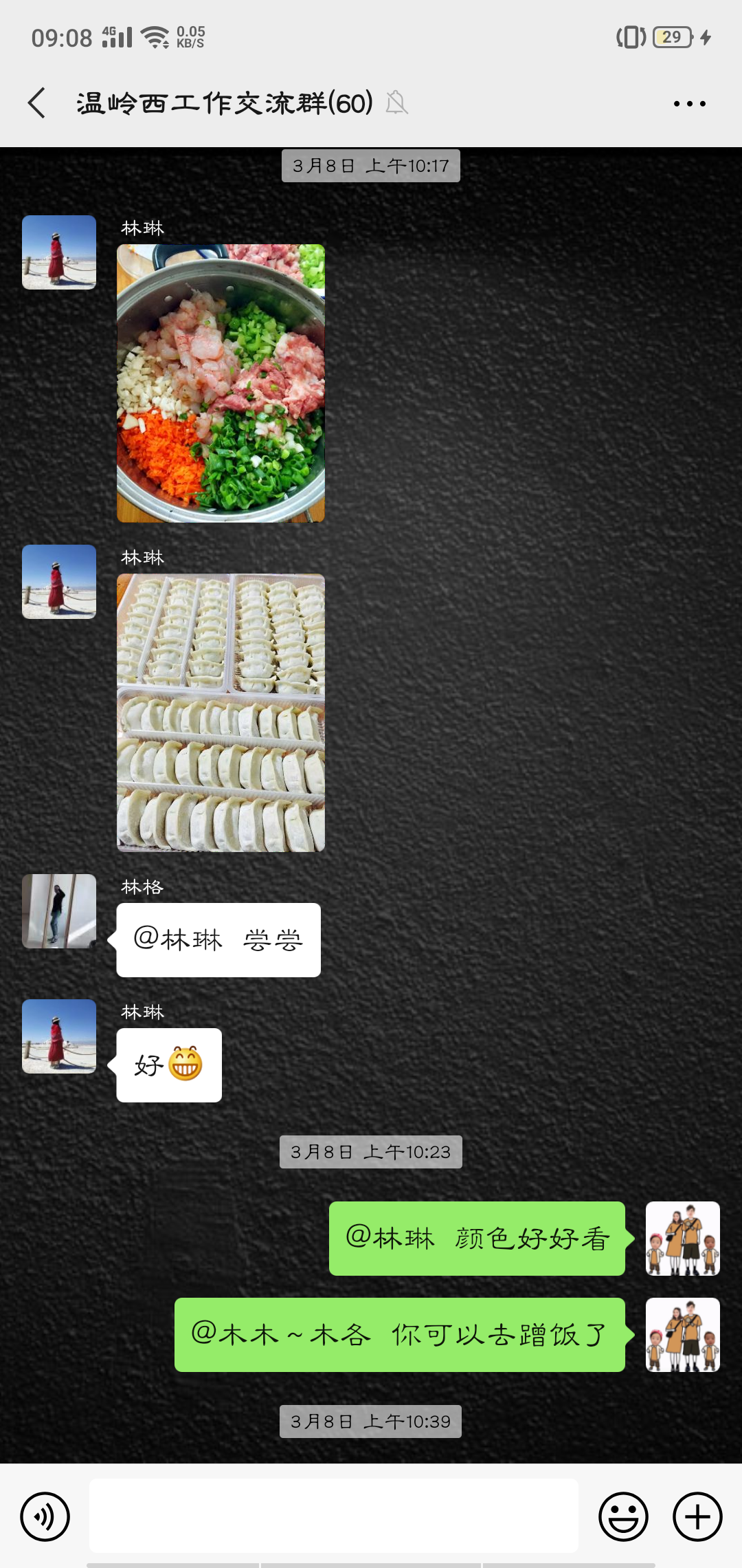 活動中,大家的參與性都很高,紛紛在微信群內曬出自己制作的美食:鹽焗雞、可樂雞翅、蔥油角角魚、溫嶺小吃豬肉飯、玫瑰南瓜饅頭……紛紛亮出了自己的拿手好菜,在群里談論得熱火朝天的同時,也不忘介紹一下自己做的菜。甚至很多男同事也紛紛曬出自己的最佳廚藝,祝福女同胞節日快樂。