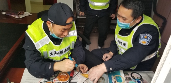 圖為工作人員在檢修緊急電話 此次隧道清洗,隧道所員工加班加點,檢查隧道內消防箱、檢修隧道風機和加強燈回路、修理故障的語音提示,對配電房機電設備進行除塵保養(yǎng),還檢測了火災報警、緊急廣播、緊急電話等系統(tǒng)。