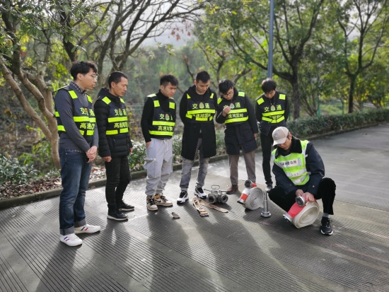 本次培訓(xùn)對隧道預(yù)警流程、二帶連接及執(zhí)勤隊在平時巡邏、預(yù)警、處理事故中如何確保自身安全等進行重點講解。執(zhí)勤隊長帶領(lǐng)隊員們在管理所操場進行模擬主線卡口、事故拋錨車預(yù)警封道操作,樂清公司員工觀摩之后也進行實際操作,孫鵬詳細講解擺放隔離錐應(yīng)注意事項,每一隔離錐的間隔位置、巡邏車后方擺放的安全距離,事故處理之后,收隔離錐應(yīng)注意的安全動作。陶文輝為樂清公司員工演示二帶連接”,并對水帶的甩、接、收每一動作盡可能詳細仔細地進行解說示范。