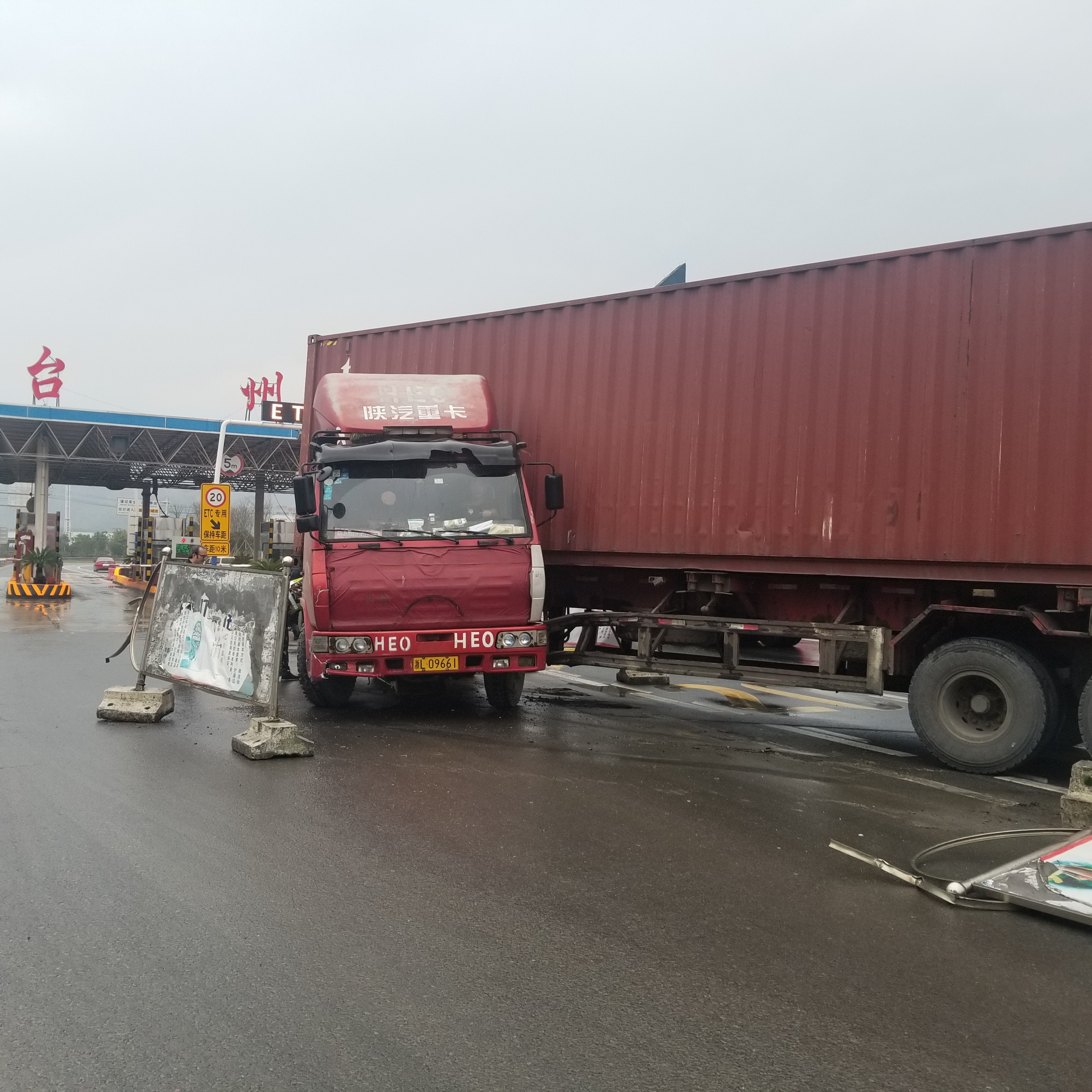 圖為大貨車碰撞隔離帶 施救中心和通遠公司是這一片隔離帶損壞的見證者。早在2018年12月20日,一輛集裝箱大貨車由于打方向過急,就曾在此地來了個“龍回頭”,造成隔離帶的損壞。當時施救中心和通遠公司都參與了救援及理賠,費了很大的勁才把這輛集裝箱大貨車引回道路。在后續把隔離帶恢復原位的過程中,由于隔離帶破損和水泥墩的沉重,不少人因此還受了傷。 此次,路橋通遠公司在接到消息之后,行動迅速,馬上組織人員趕到現場進行清除作業。在忙碌了半個上午之后,終于把損壞的廣告式隔離帶全部清除。