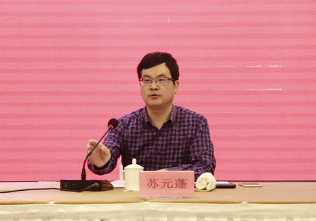 圖為市政府副秘書長(zhǎng)蘇元蓬主持會(huì)議