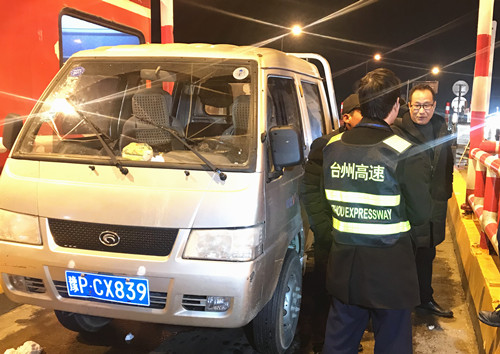 圖為公司副總經(jīng)理章海峰在臺州南收費站向拒付通行費人員解釋相關(guān)政策