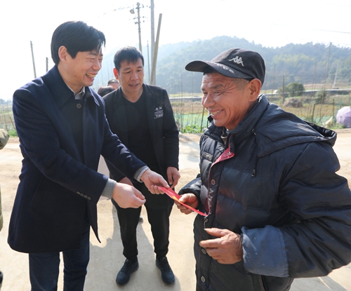 圖為集團(tuán)總經(jīng)理張建平慰問(wèn)塘上村老人