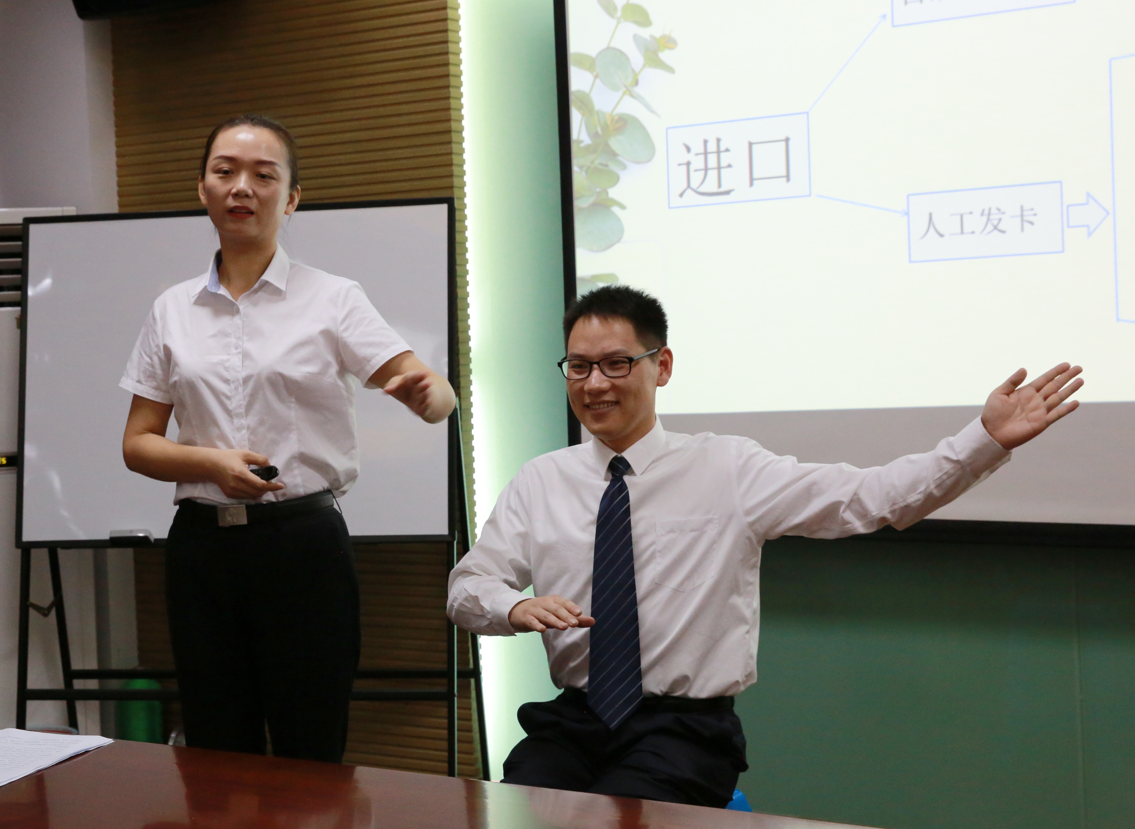 隨后,臨海南收費(fèi)所文明服務(wù)培訓(xùn)師徐蘇蘇通過(guò)PPT,以輕松風(fēng)趣的講課風(fēng)格,給班子領(lǐng)導(dǎo)們上了一堂儀容儀表講解、操作流程演示、文明服務(wù)動(dòng)作以及心理建設(shè)的課,并通過(guò)員工真人示范文明服務(wù)中坐姿、眼神、聲音等練習(xí),令在場(chǎng)的受訓(xùn)者耳目一新。