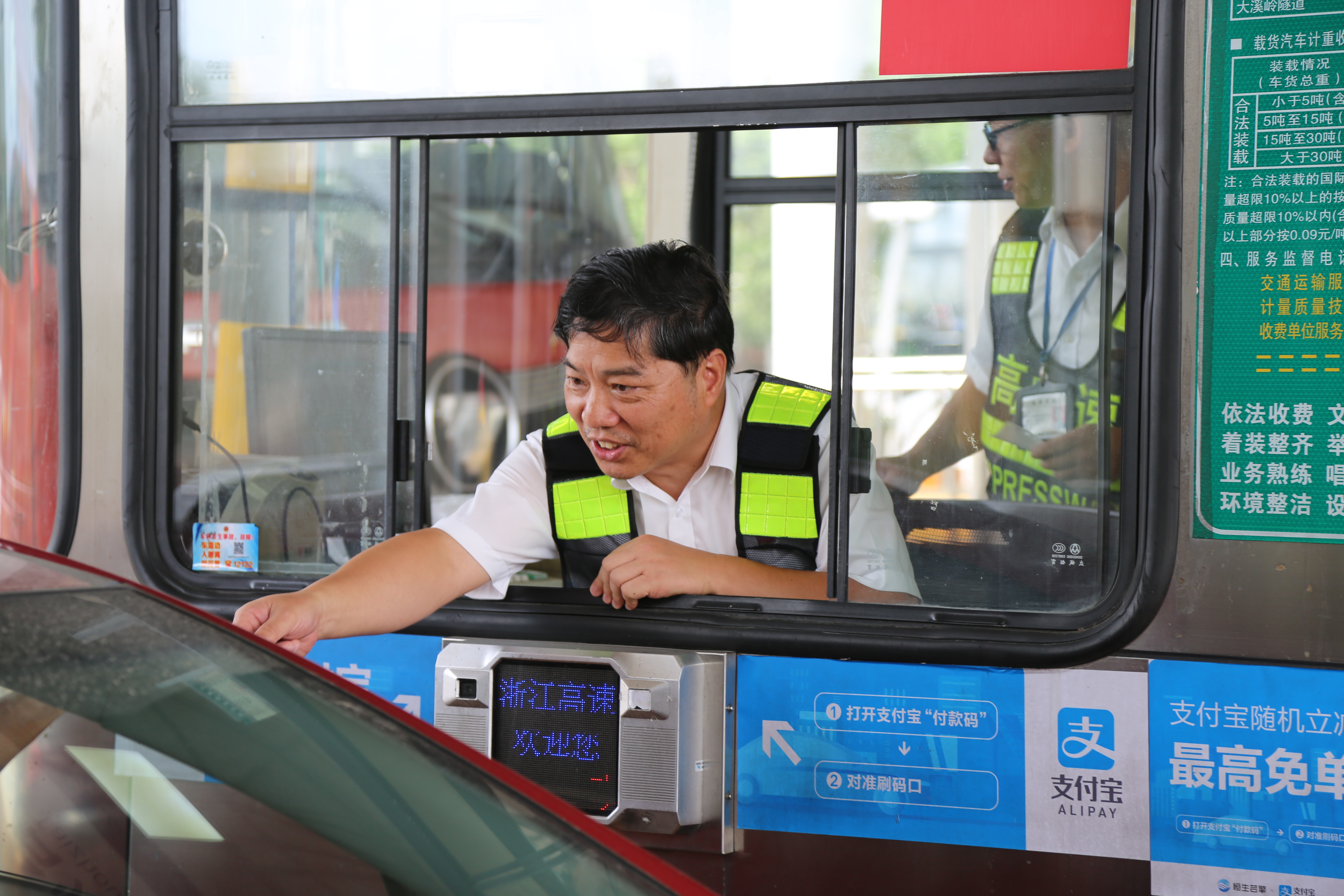 而在對(duì)面發(fā)卡的安全總監(jiān)項(xiàng)同富正襟危坐,等待著車子的駛?cè)耄?/span>“記住動(dòng)作就忘記微笑,笑起來(lái)又忘記要說(shuō)什么......真有點(diǎn)手忙腳亂的,做好收費(fèi)員,不容易。”