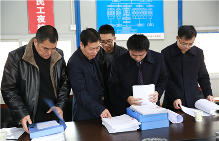 圖為集團總工程師江輝在檢查安全臺賬