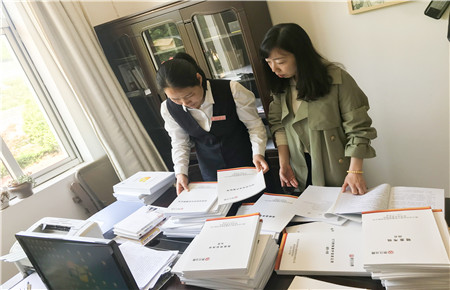 圖為人力資源部工作人員查看臨海南收費所檔案管理情況