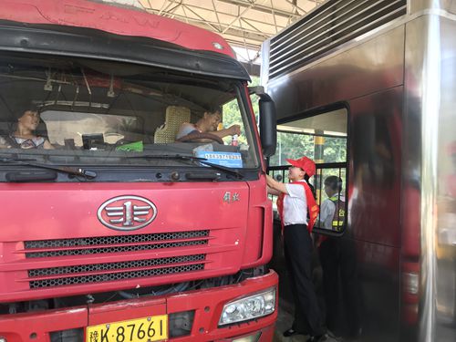 圖為收費(fèi)所送清涼志愿者合影