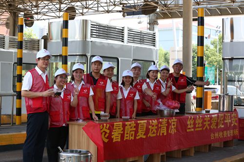 同日開始,臺州收費(fèi)所組織志愿者開展“炎暑酷夏送清涼,絲絲關(guān)愛促平安”為主題的送清涼活動,所內(nèi)黨員、入黨積極分子及業(yè)務(wù)骨干等20多名志愿者身著統(tǒng)一的志愿者服飾,在車道的安全島上拉起橫幅,搭起“便民服務(wù)臺”,免費(fèi)向過往人員送上防暑藥品和所里食堂自制的綠豆湯、青草糊等解暑飲品,喝在口中,甜在心里,司乘人員紛紛贊不絕口。