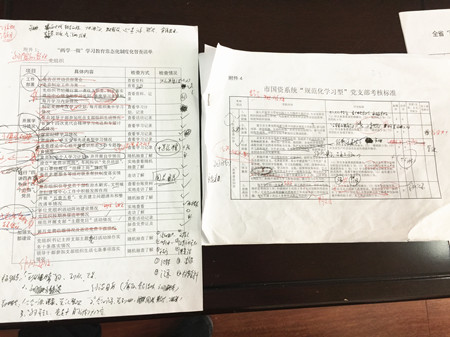 圖為檢查黨建臺賬現場